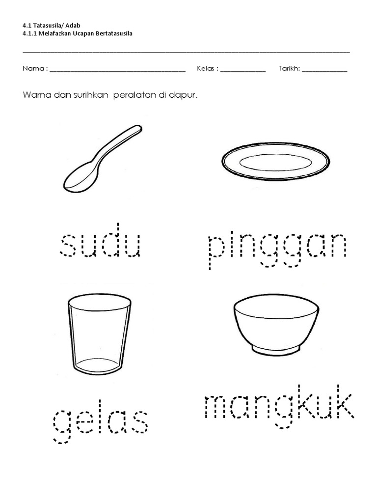 . Tahukah kamu apa saja nama alat-alat memasak. Cocok untuk usia TK. Peralatan mewarna dibawa sendiri oleh peserta.